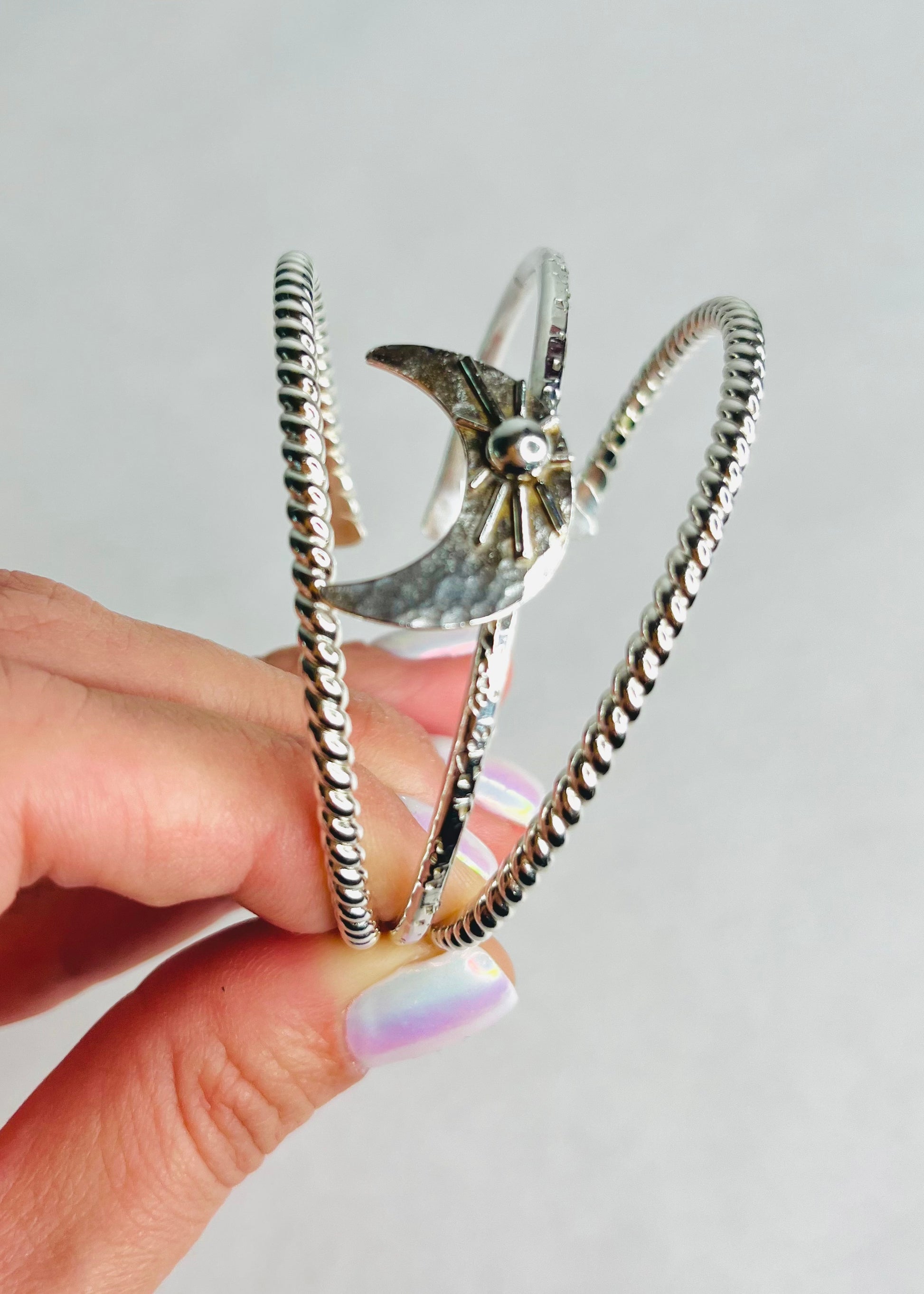 Measures: Moon measures approximate (H:2cm x W:2.5cm). Cuff made by size.