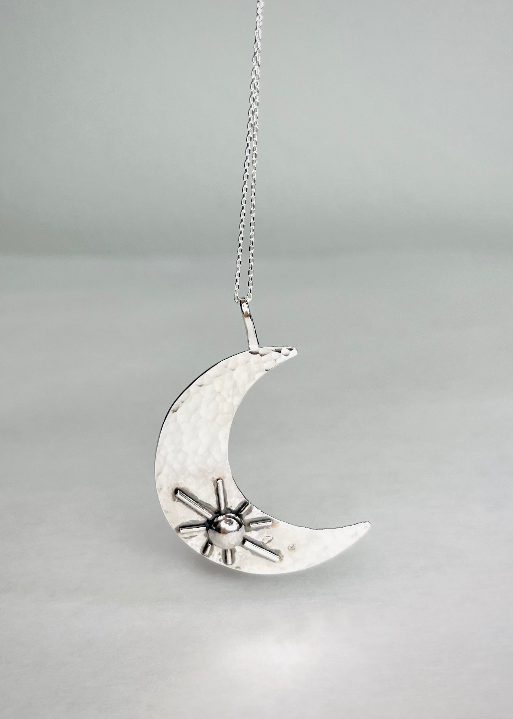 **Handcrafted necklace made with sterling silver 925 metal. Moon has been hammered for a beautiful and stunning look, SUN made with melted sterling silver ball and wire.