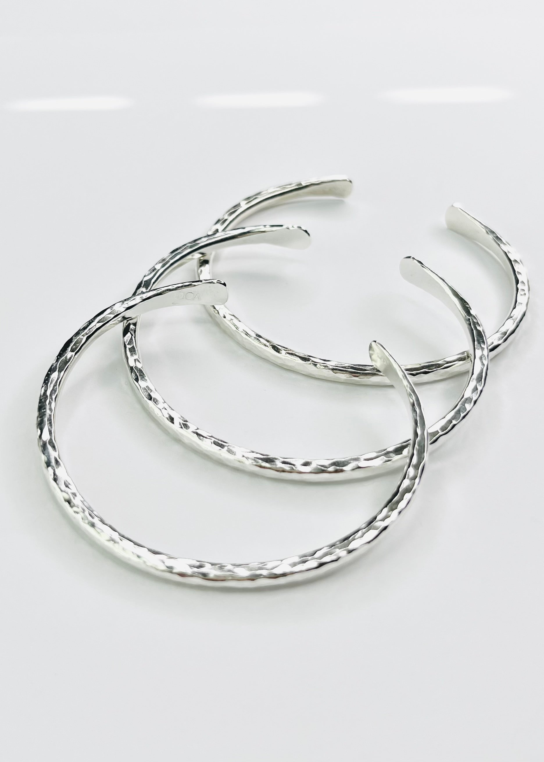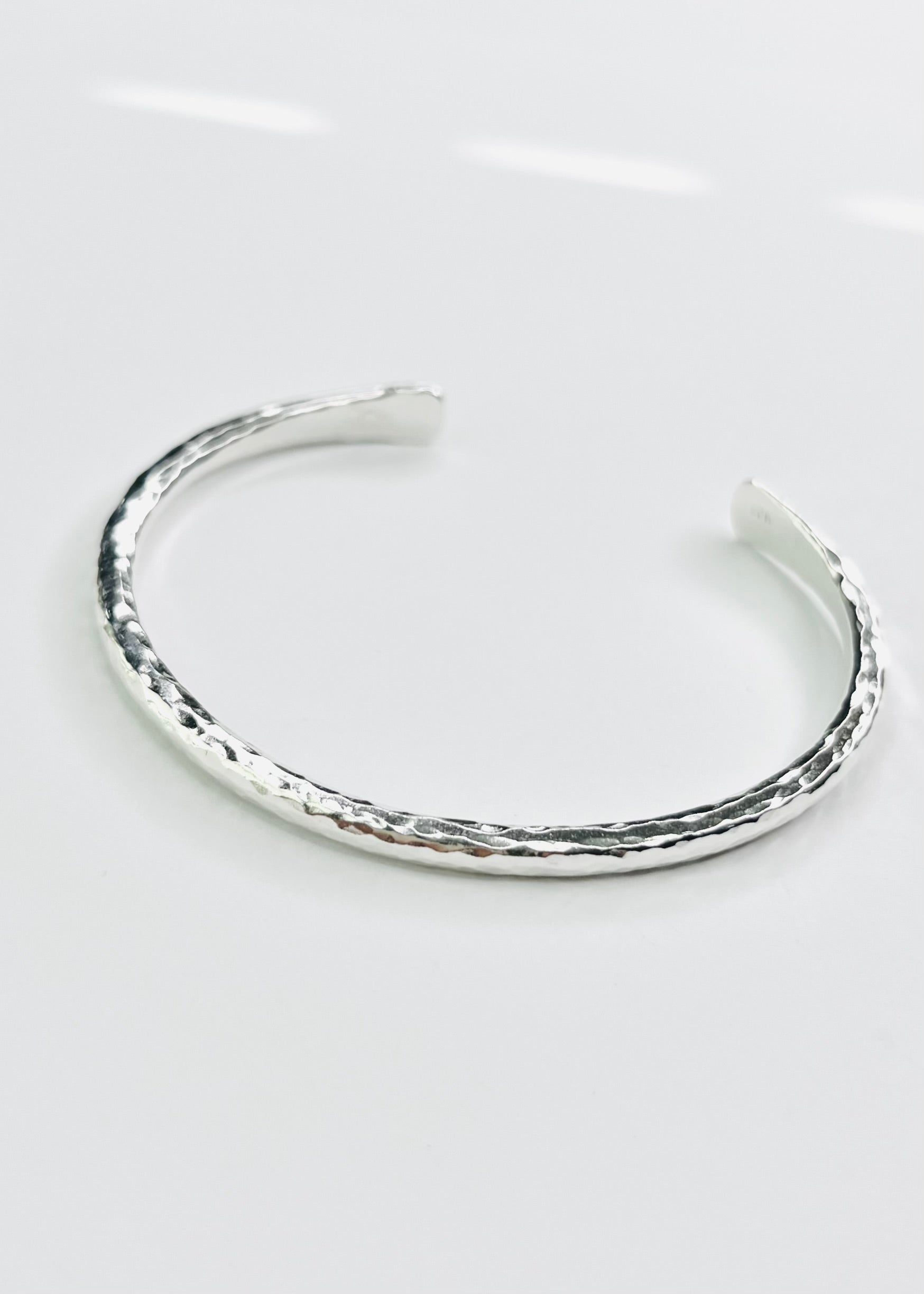 **Handcrafted cuff bracelet made with sterling silver (925) metal. Piece has textured made with a hammer.