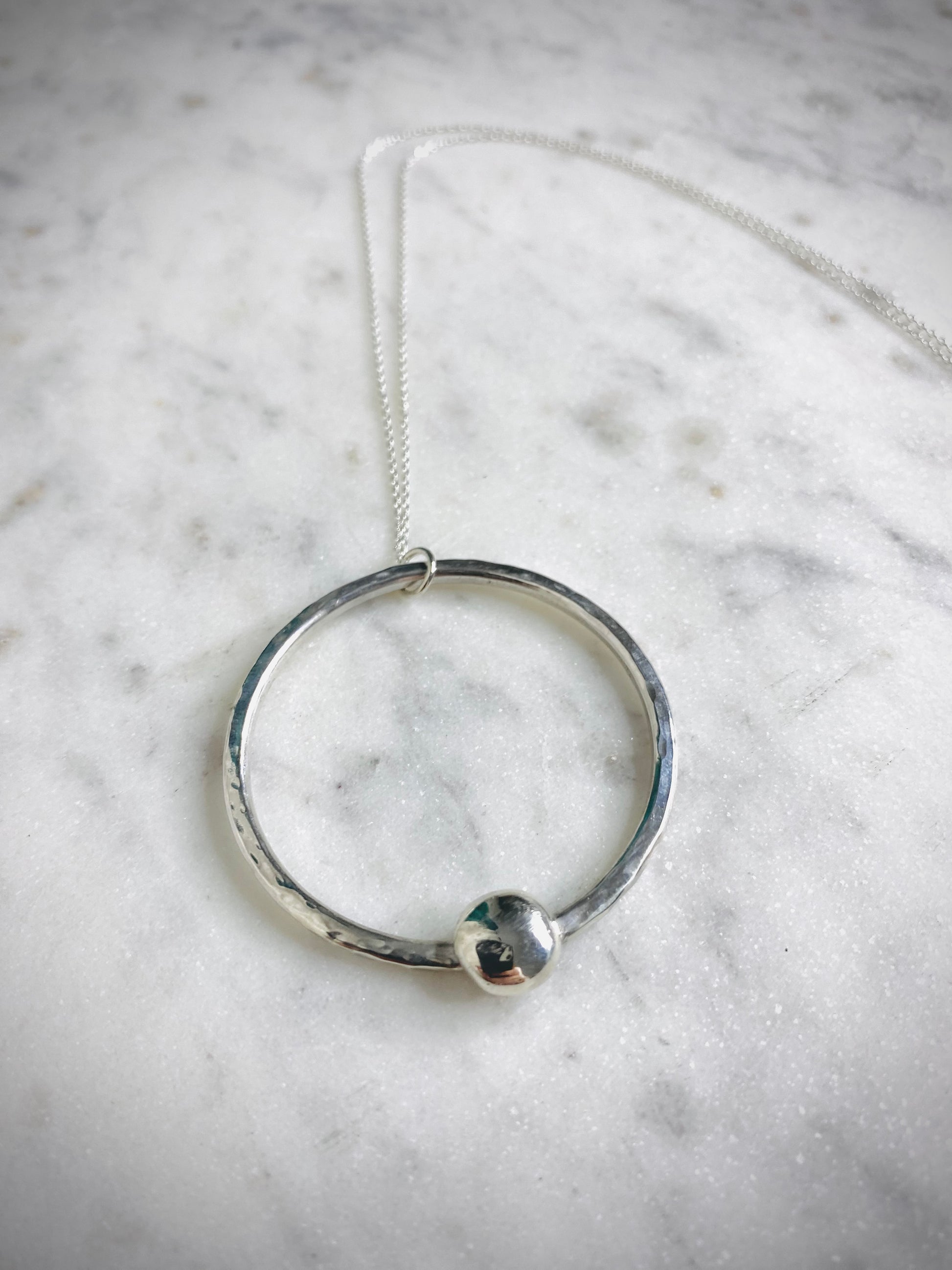 **Handcrafted ring made with sterling silver 12ga wire. Moon ball made with sterling silvered (925 wire that has been melted. Sterling silver (925) chain.