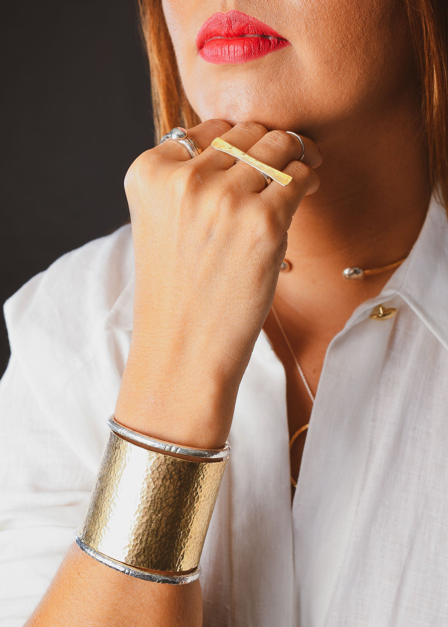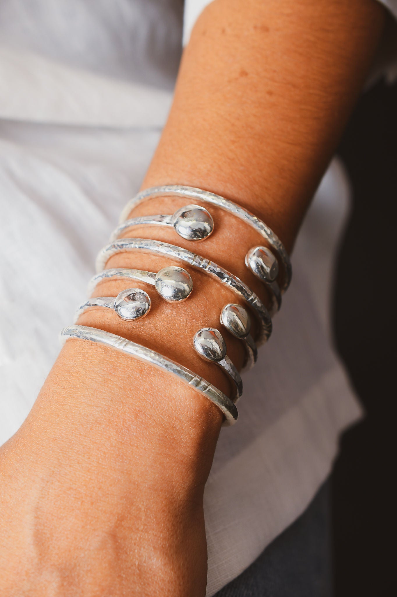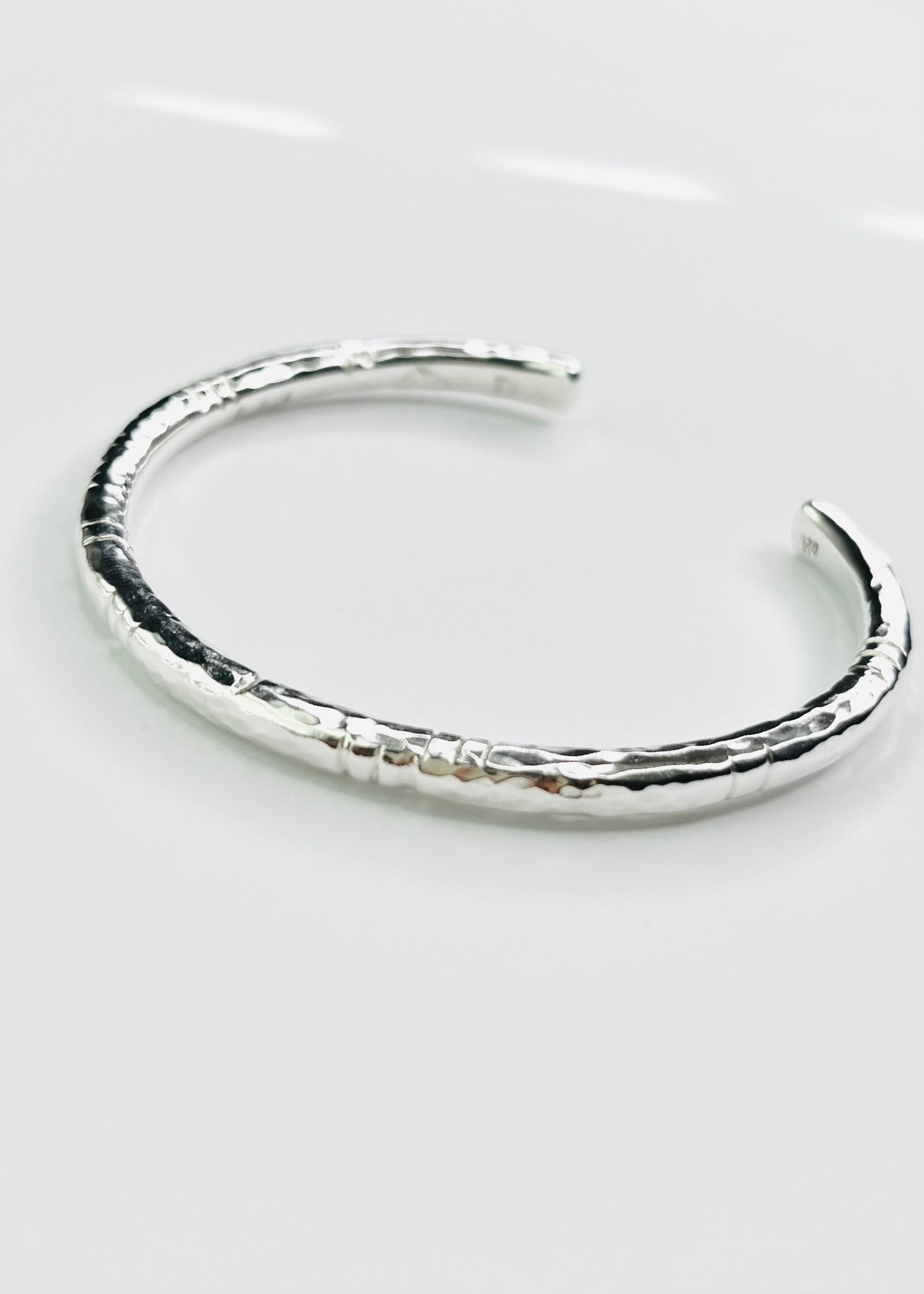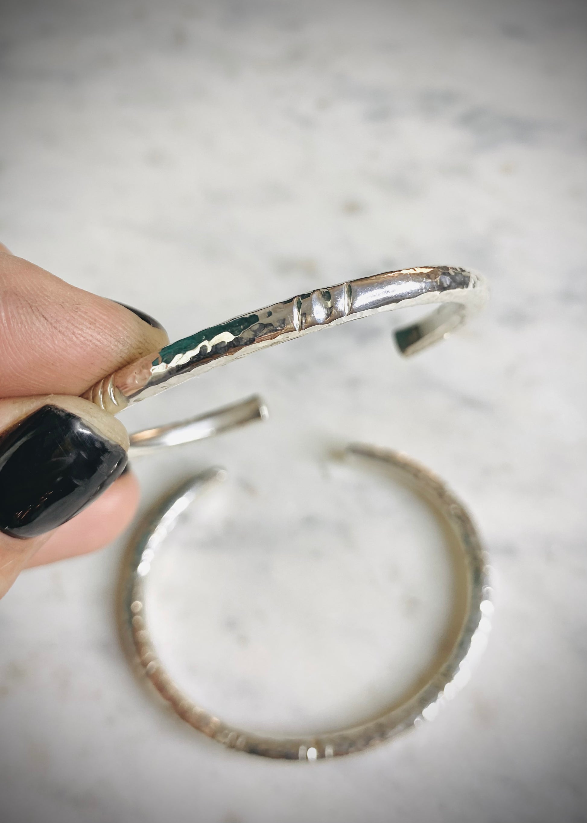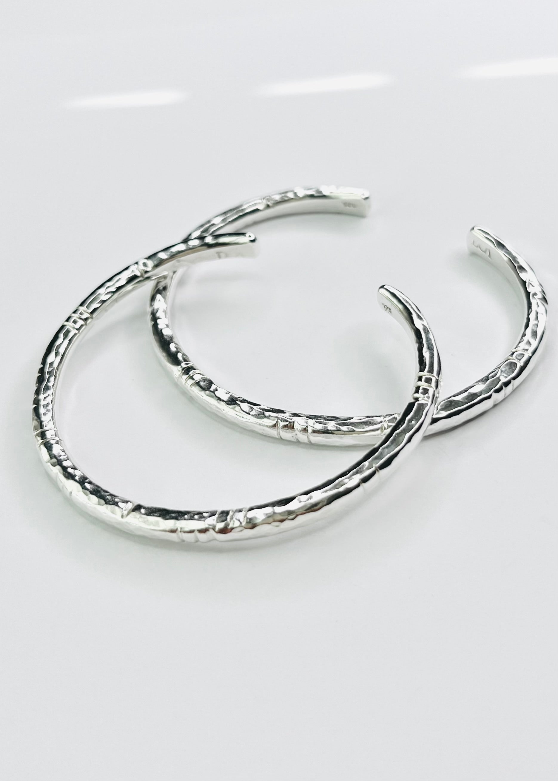 **Handcrafted cuff bracelet made with sterling silver (925) 6ga wire. Piece has been work for an organic look with many marks on it and has textured as a special detail for an stunning look.