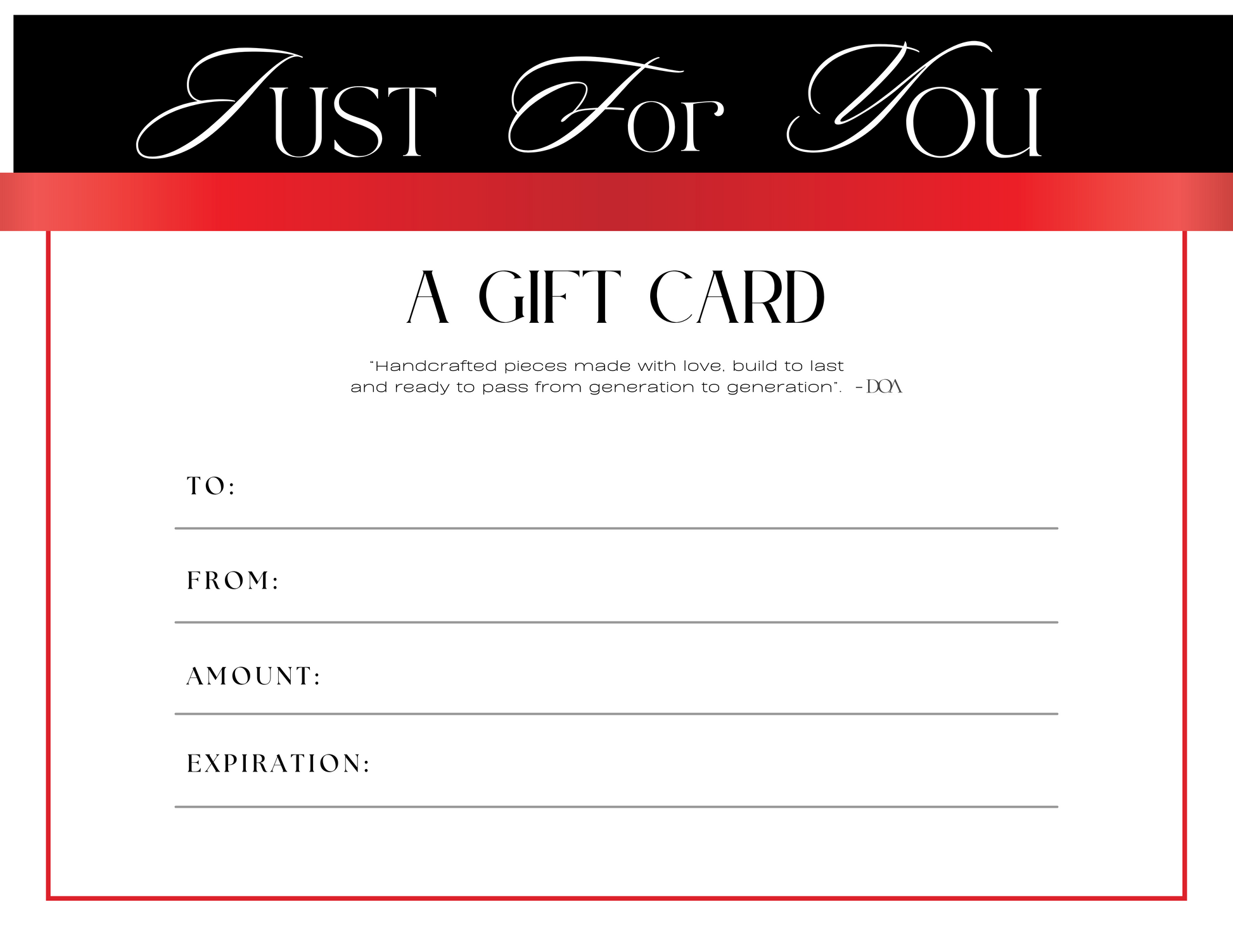 - If you'd like a custom amount for the gift card or have any other questions, feel free to reach out to me at doajewelryco@gmail.com.