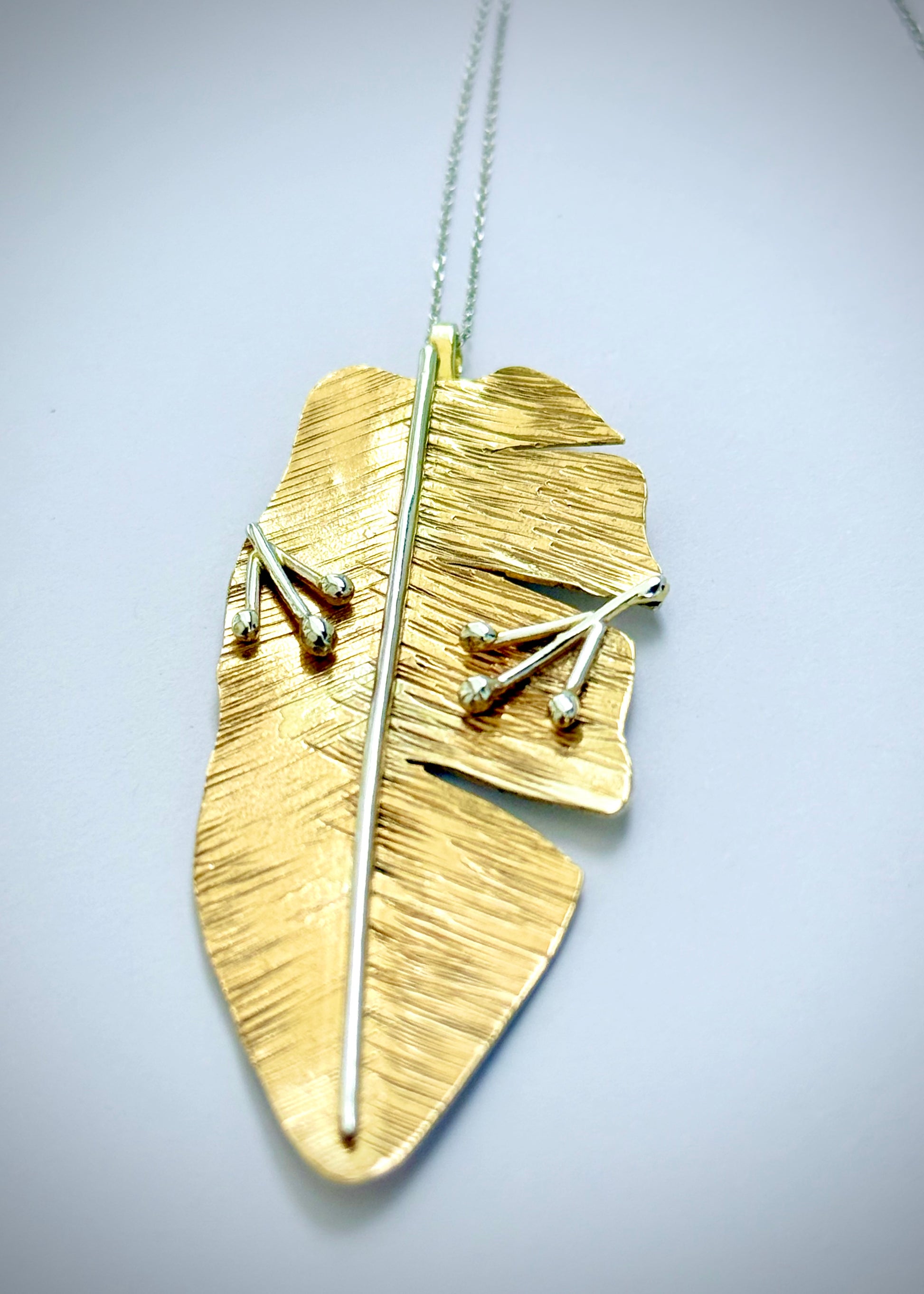 Mixed Metal Finish – first, the whole piece is plated in 18K gold. Then, I carefully polish the center back to its natural sterling silver shine, creating a beautiful contrast of silver and gold.