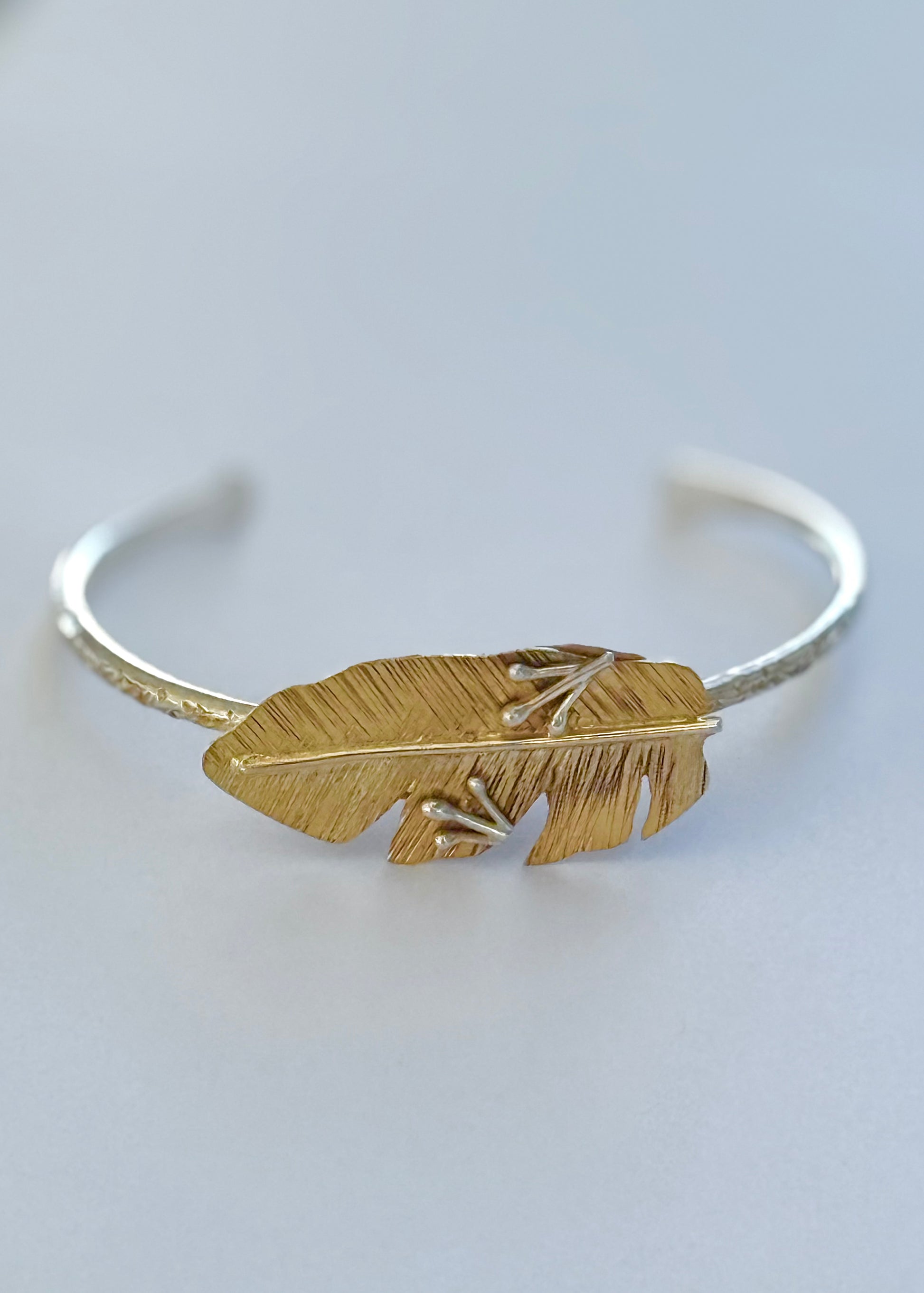 Mixed Metal Finish – first, the whole piece is plated in 18K gold. Then, I carefully polish the center back to its natural sterling silver shine, creating a beautiful contrast of silver and gold.