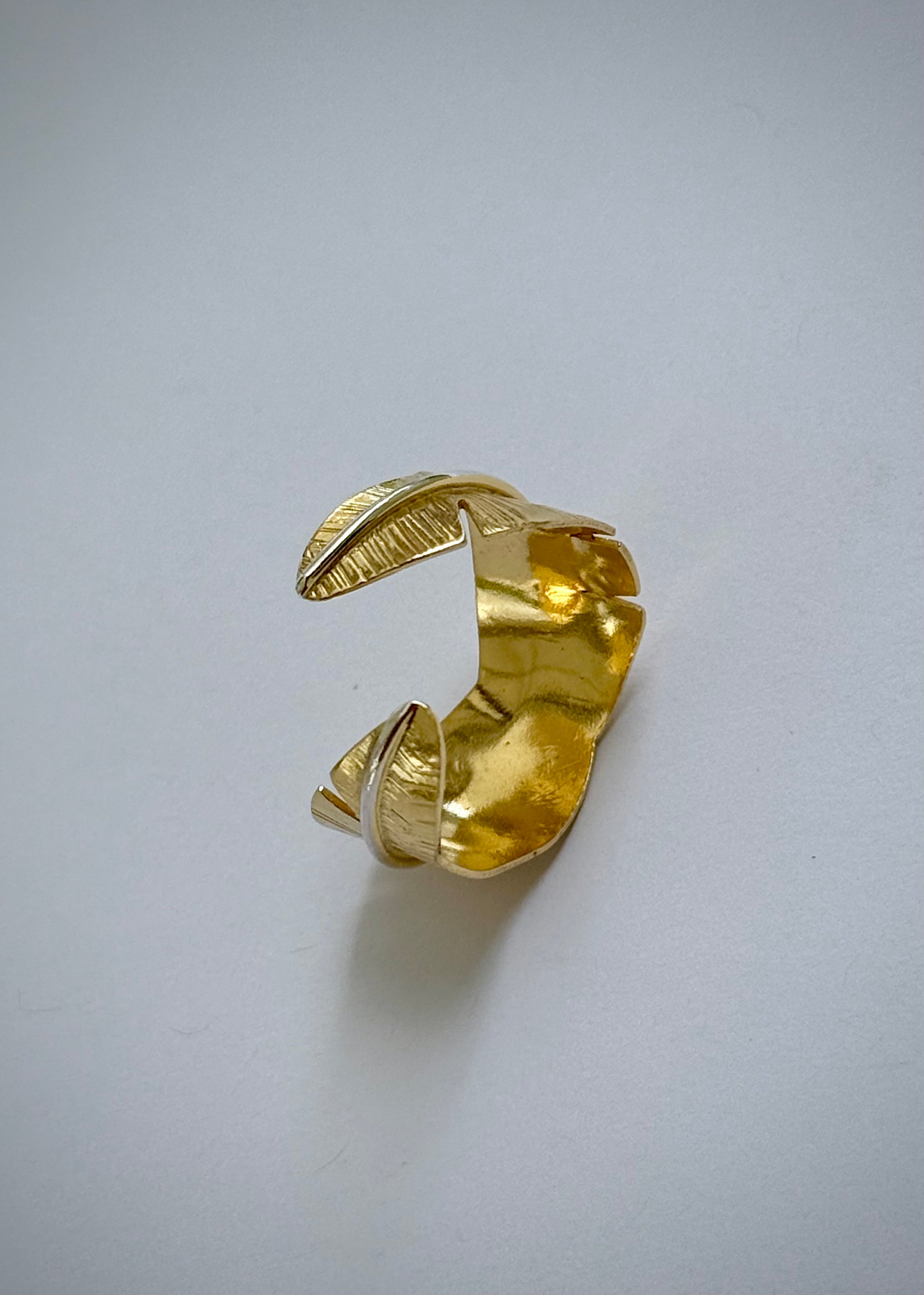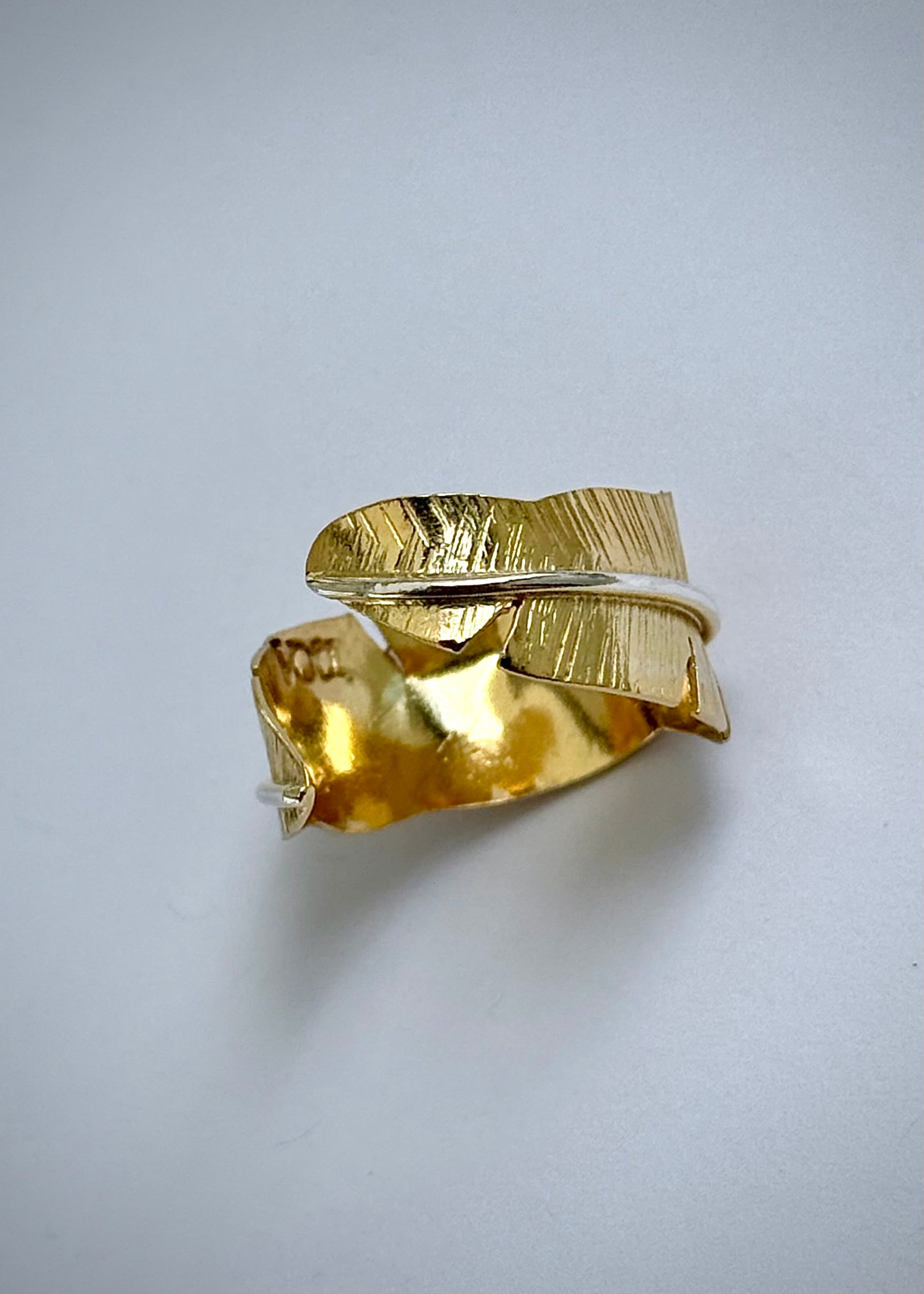 Mixed Metal Finish – first, the whole piece is plated in 18K gold. Then, I carefully polish the center back to its natural sterling silver shine, creating a beautiful contrast of silver and gold.