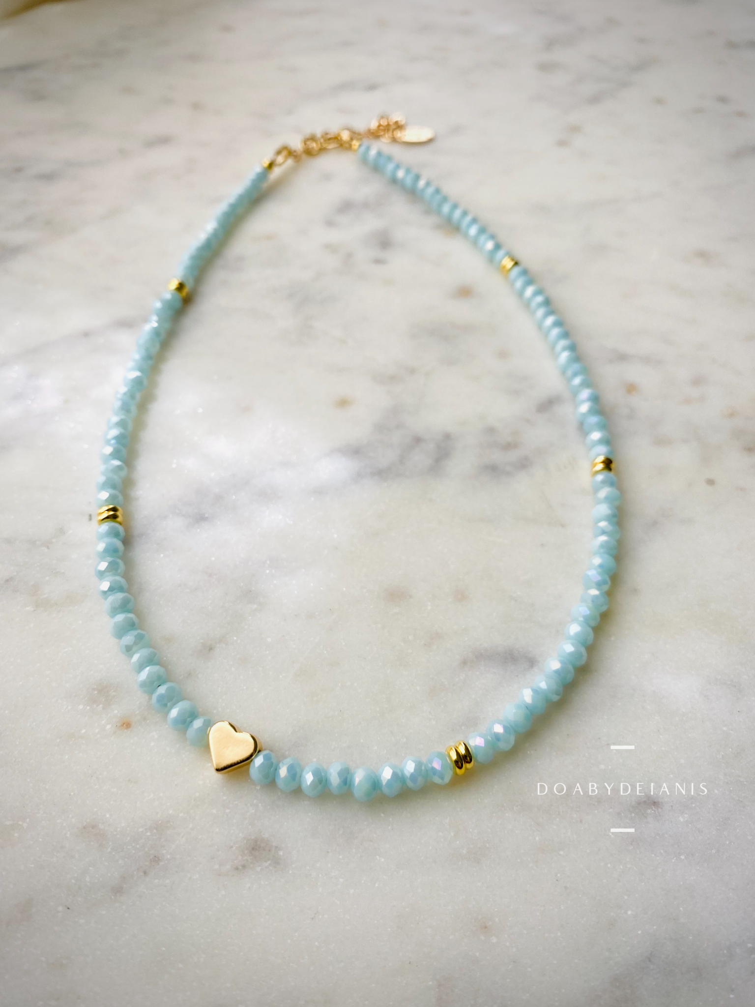 **Necklace with faceted crystal beads with a beautiful heart charm. Necklace is a choker and golden materials are 18k real gold plated.