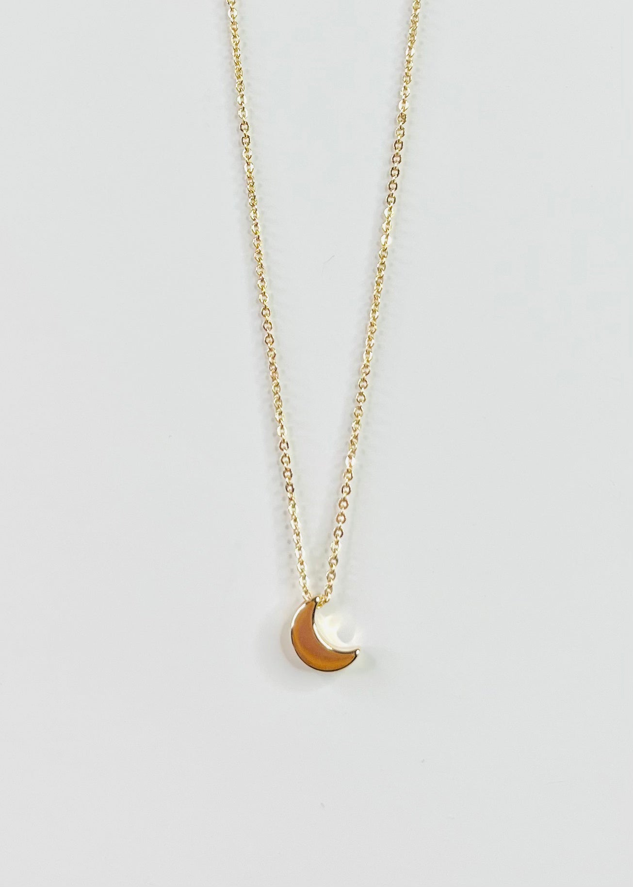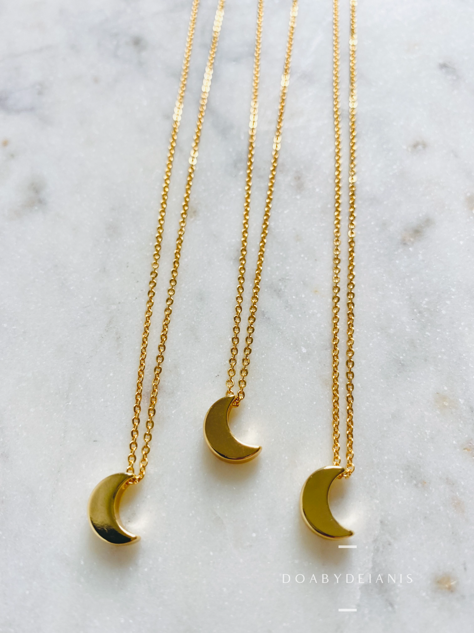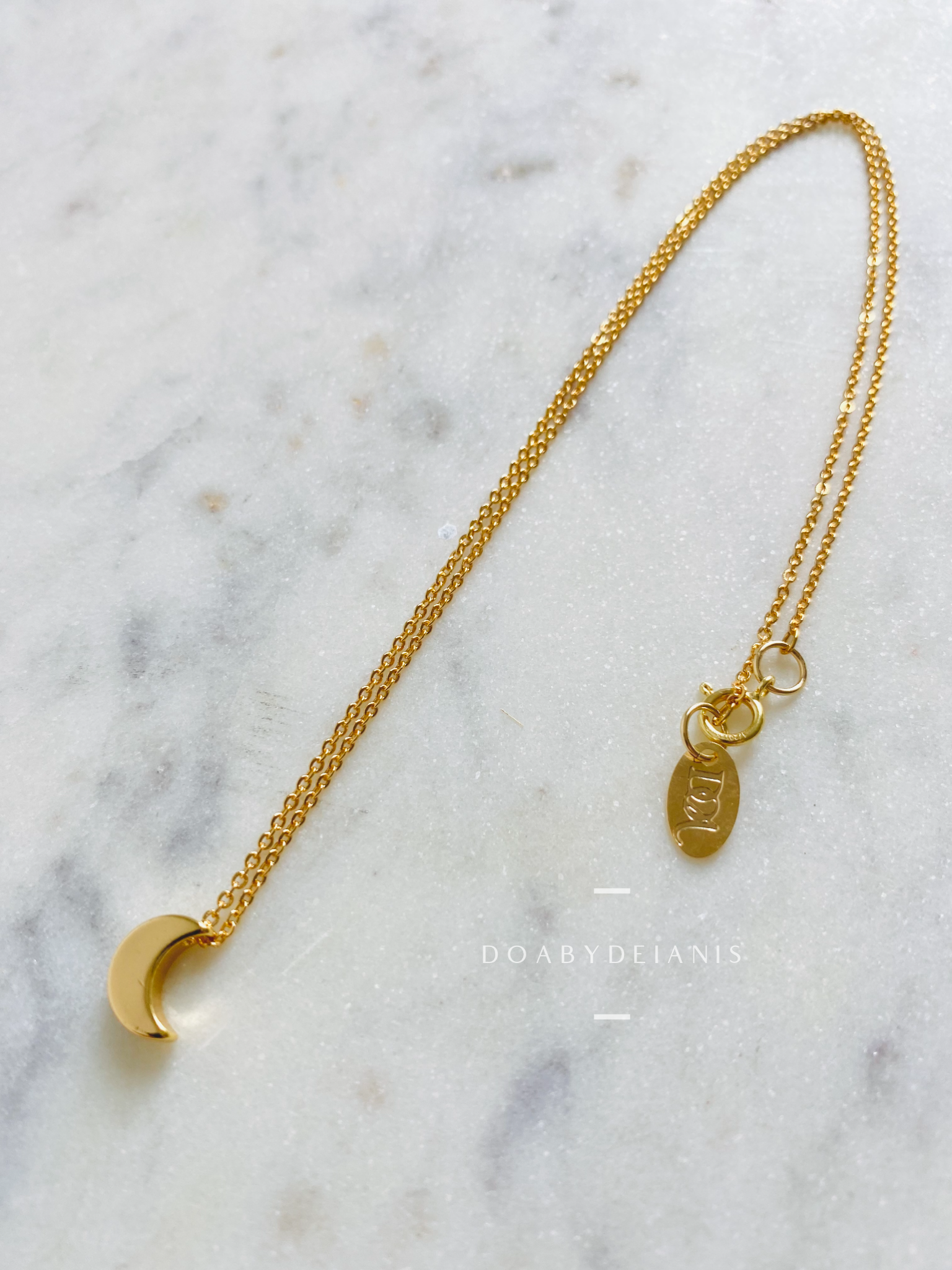**Minimalist necklace with moon charm. Necklace long is 16 inches. Piece made with 18k real gold plated (enchapado en oro).