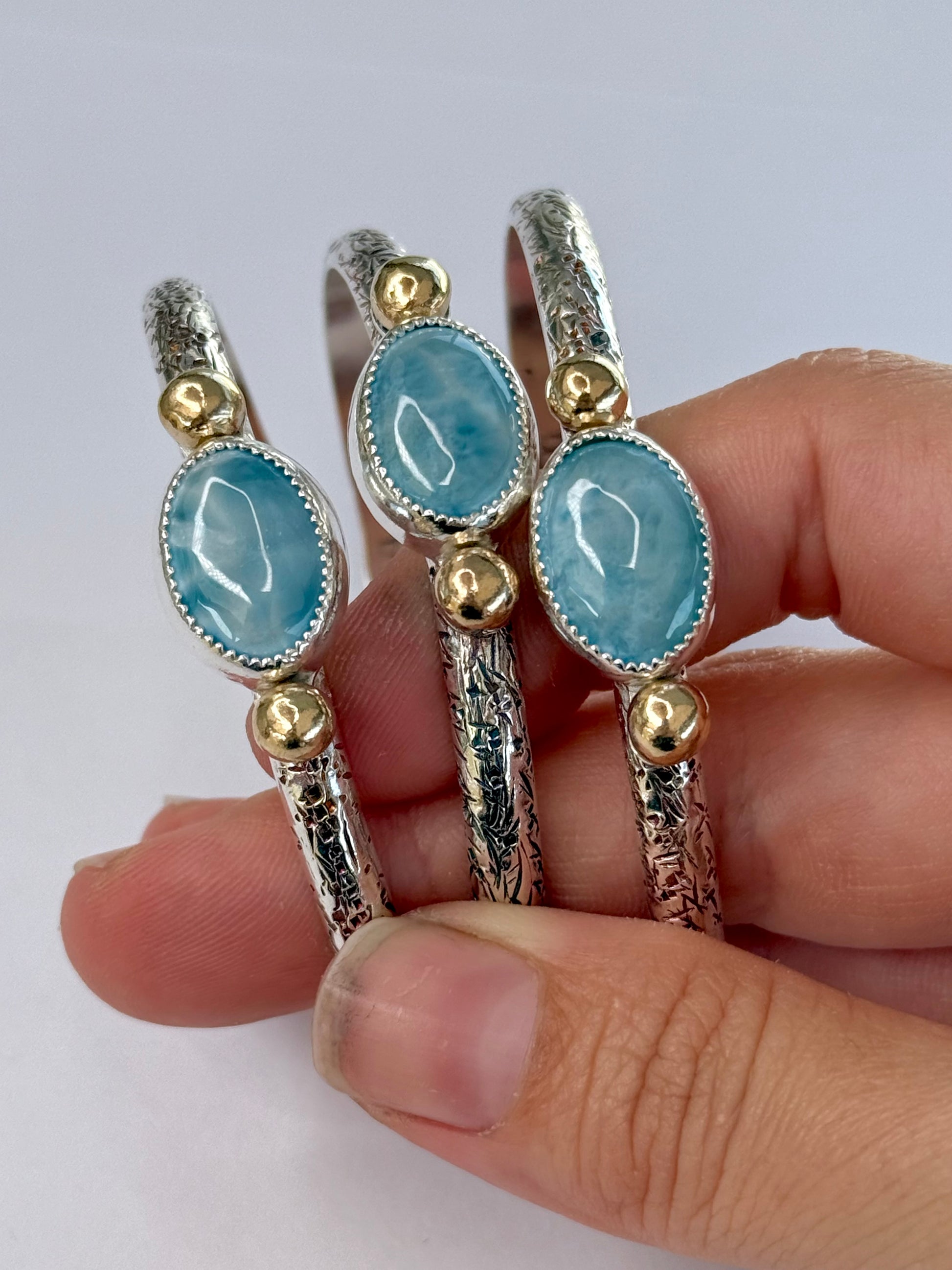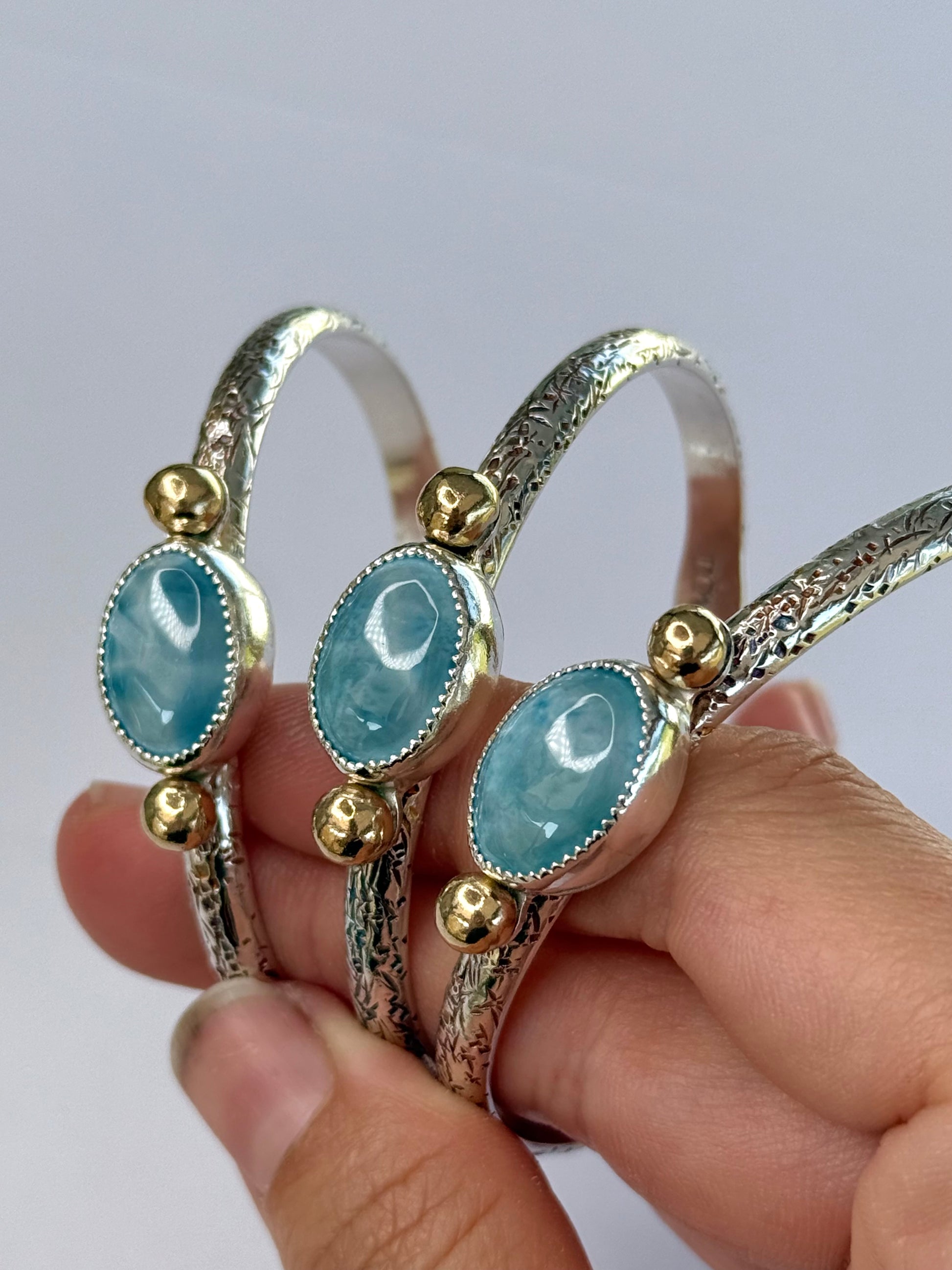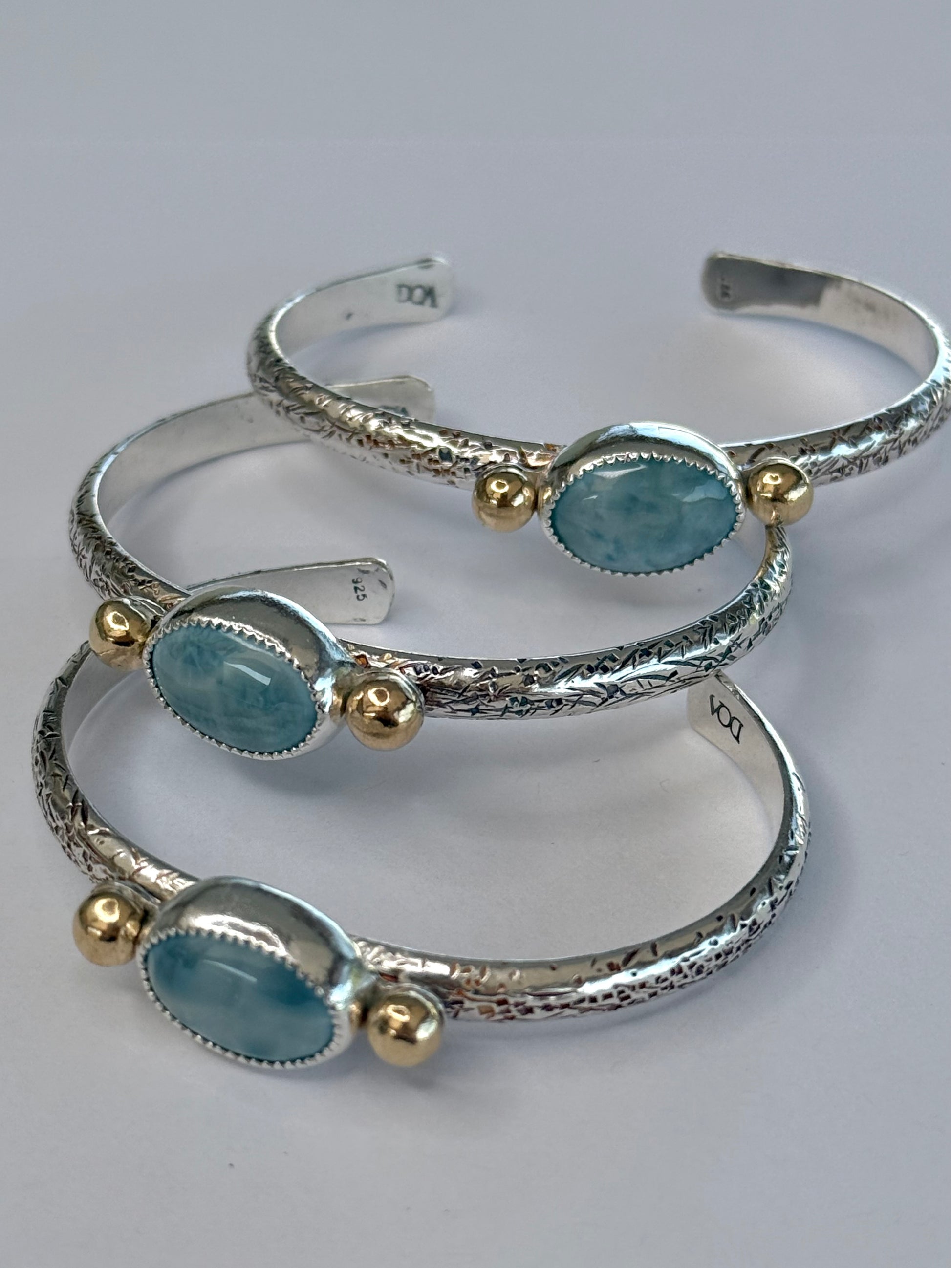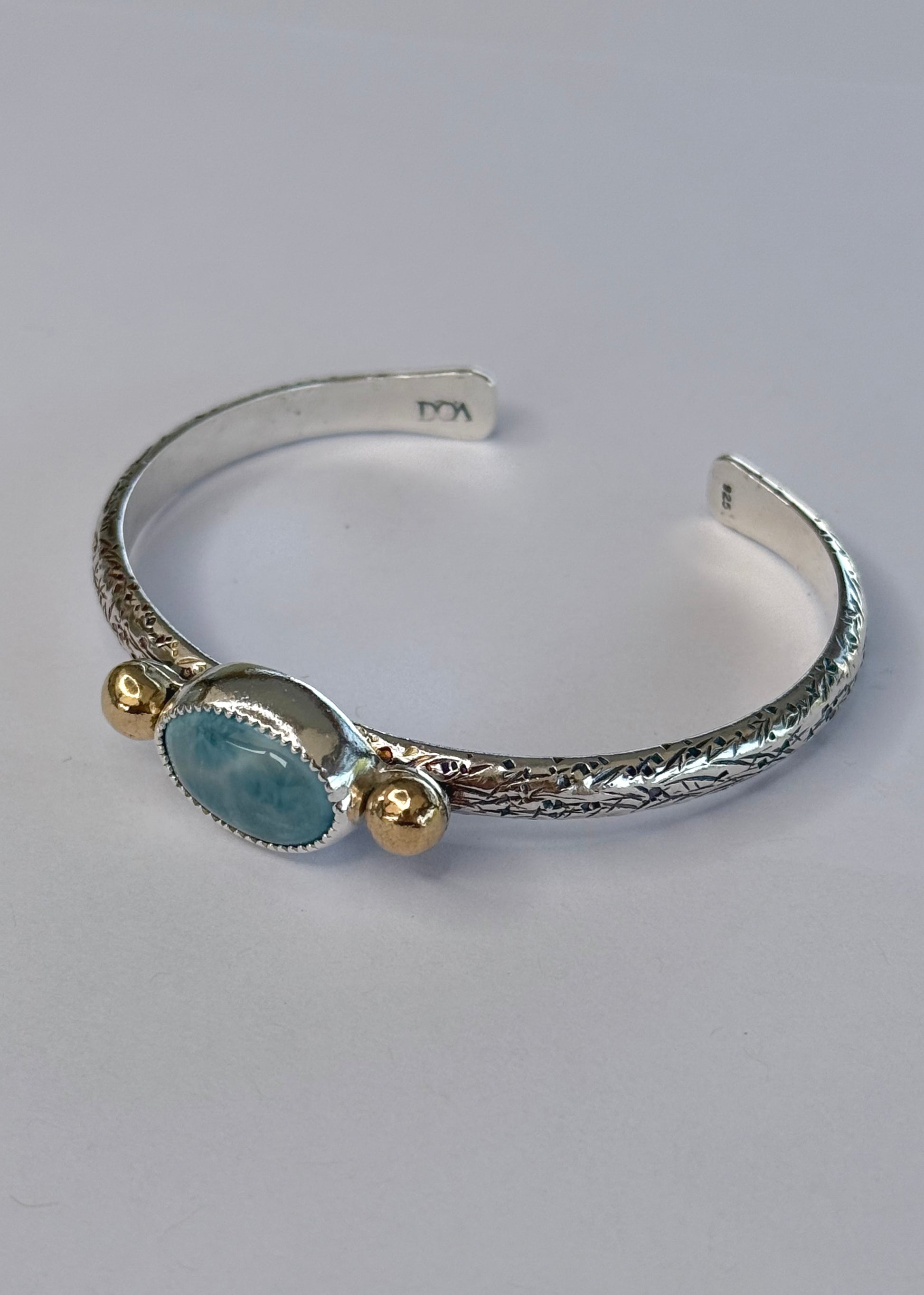 Gorgeoussssss Larimar stone setting with hand stamped cuff band.