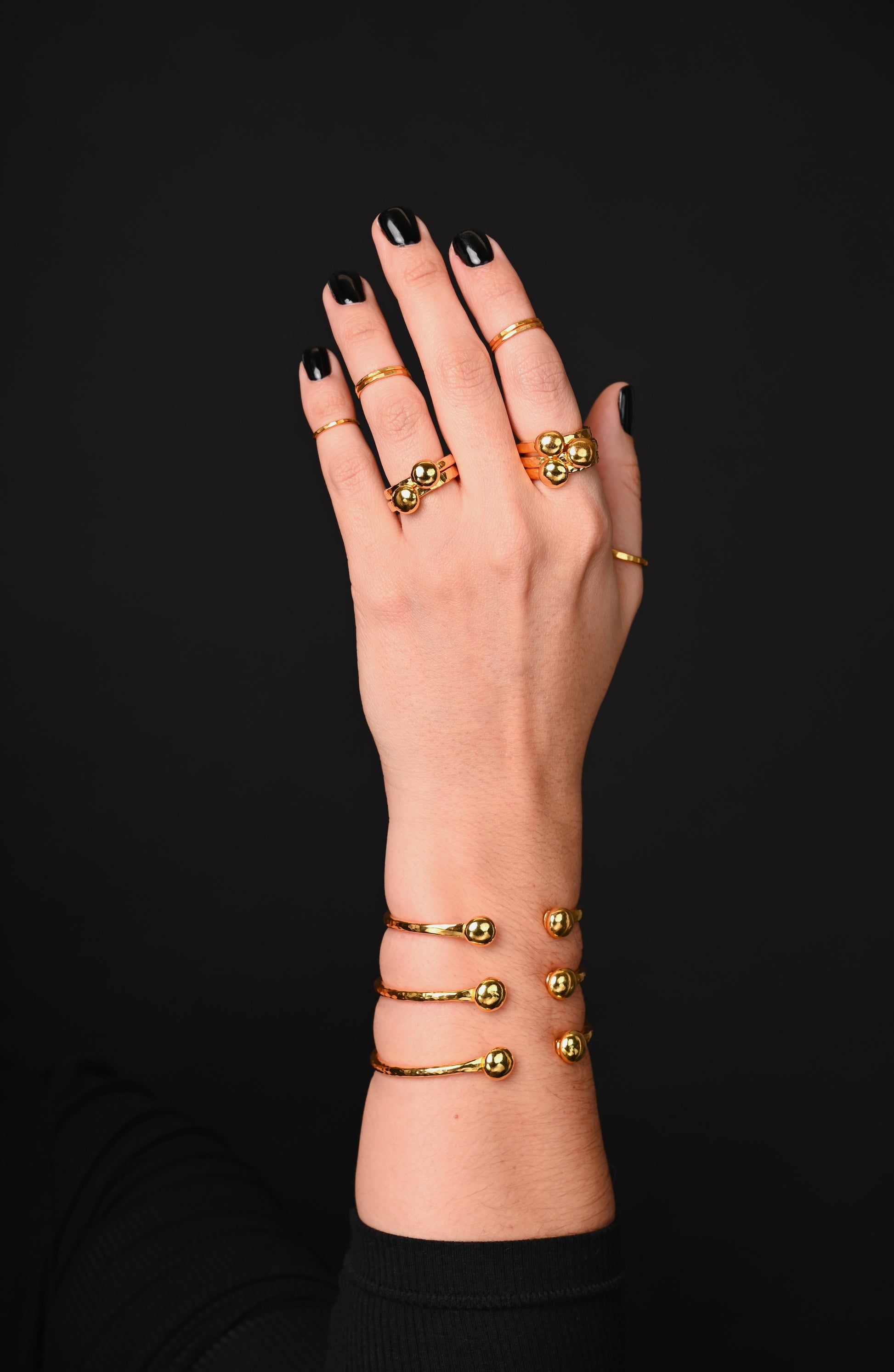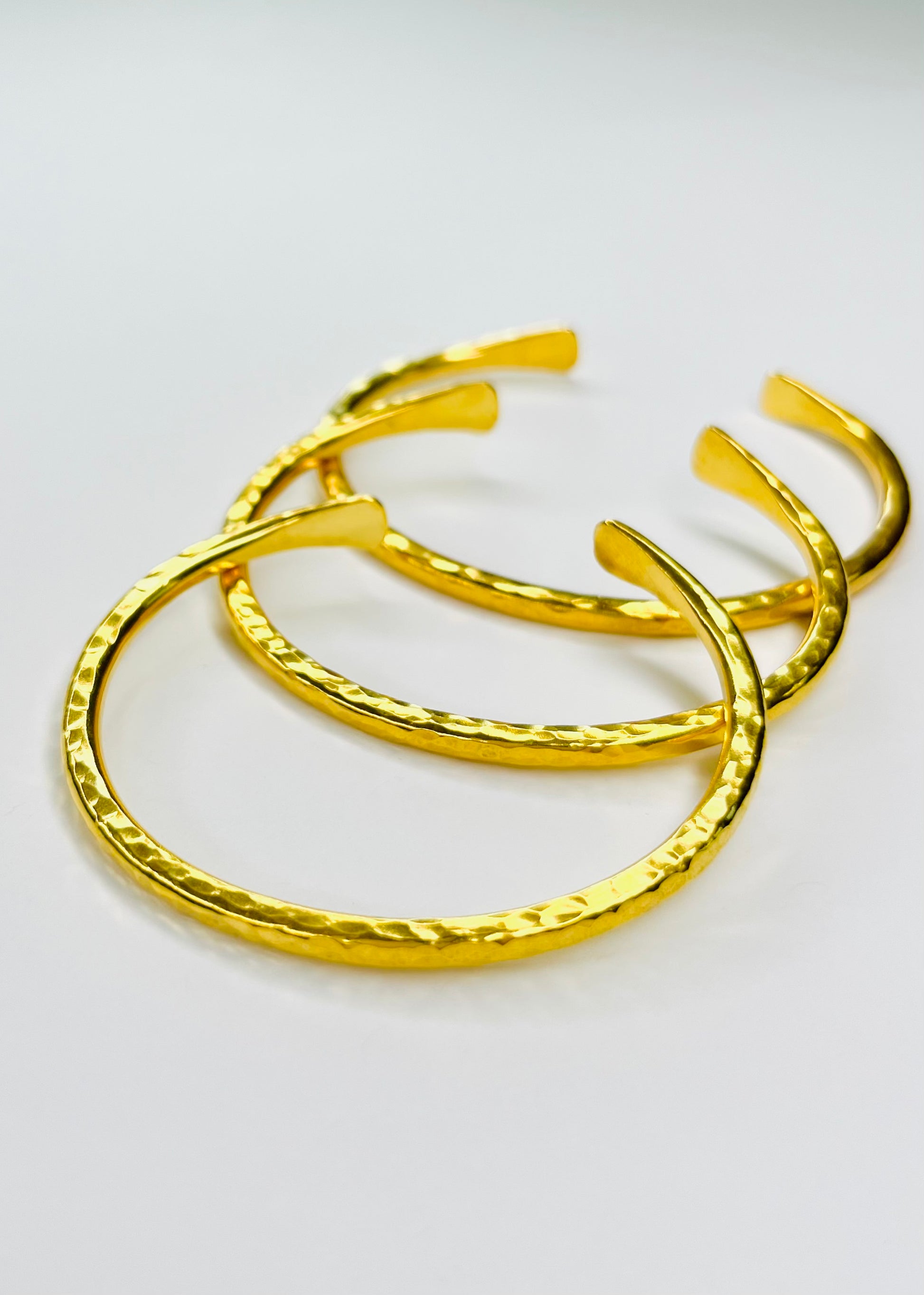 **Handcrafted cuff bracelet made with sterling silver (925) metal. Piece has textured made with a hammer. Finished with 18k gold plating (vermeil piece).