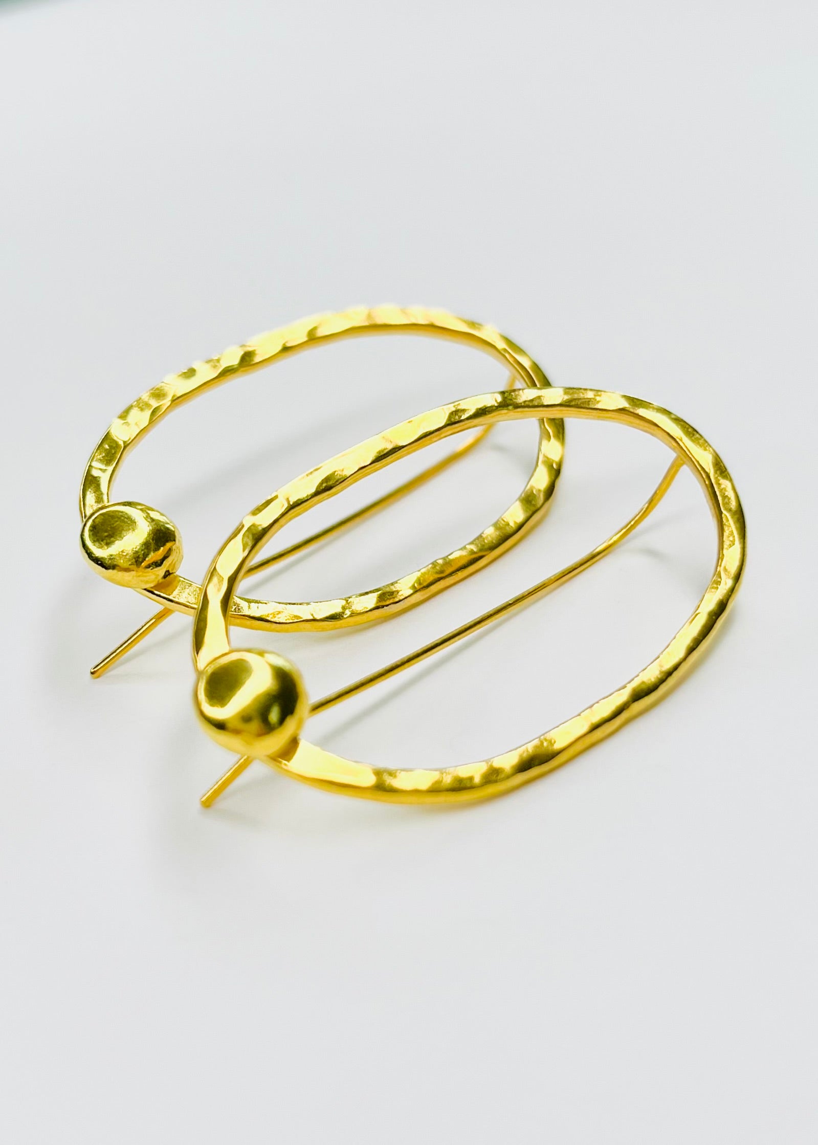 **Handcrafted earrings made with sterling silver metal. SS little balls representing the Moon. Piece wire with texture made with a hammered. Ear wire made with sterling silver (925) wire and 18k gold plated layer.